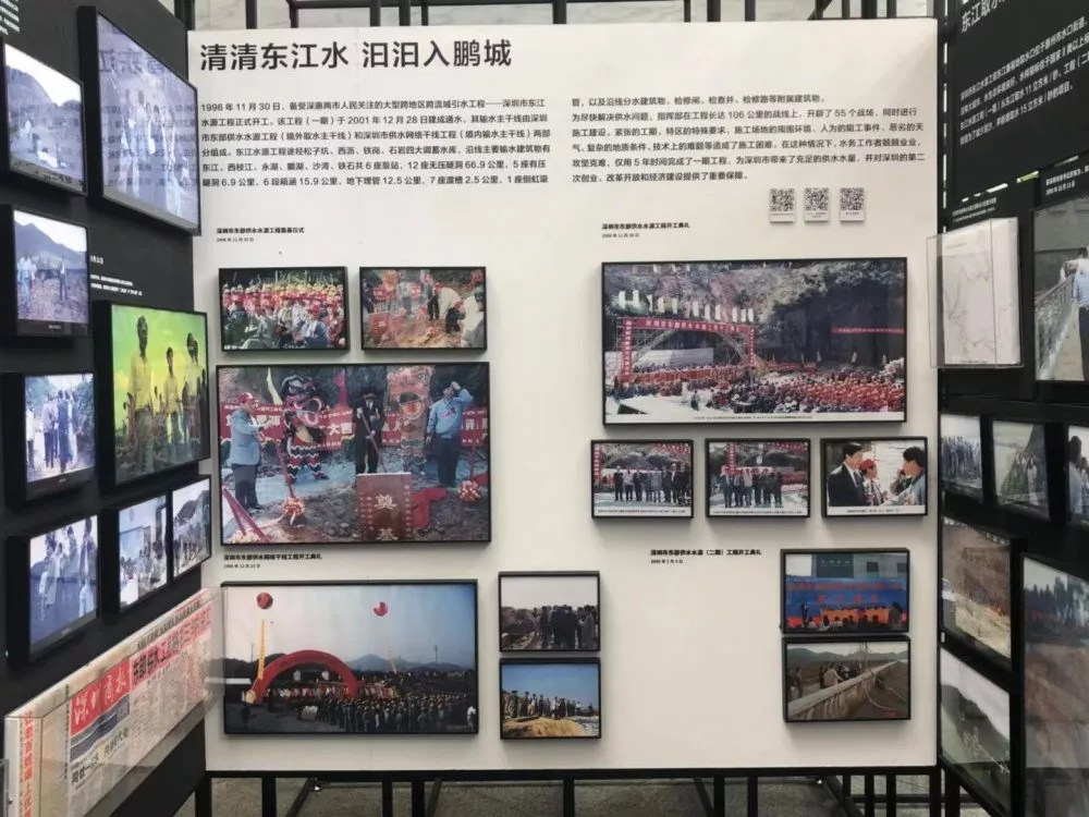 第三部分“清清東江水汩汩入鵬城”,著重展示東江水源工程建設(shè)的全過(guò)程。以工程線路為展覽線索,再現(xiàn)水務(wù)工作者在長(zhǎng)達(dá)106公里的戰(zhàn)線上奮戰(zhàn)的場(chǎng)面。通過(guò)輸水設(shè)施的新舊照片對(duì)比,描繪出一條在深惠兩城平地崛起的深圳“生命線”。