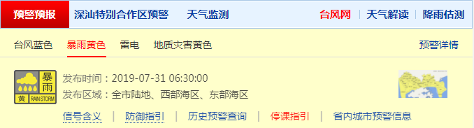 深圳市氣象局發(fā)布四個(gè)預(yù)警信號