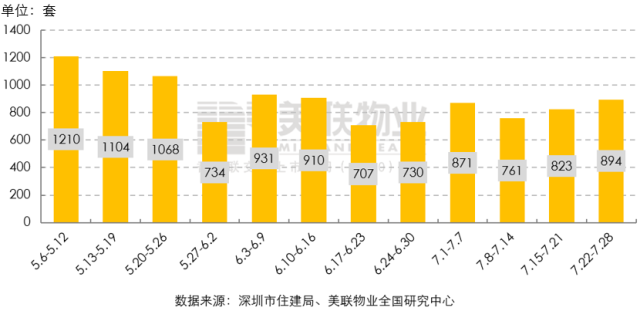 7月22日—7月28日一周內(nèi),全市共簽約成交一手住宅894套/8.5萬(wàn)㎡,環(huán)比分別增長(zhǎng)8.6%和8.0%。從周成交套數(shù)來(lái)看,連續(xù)兩周環(huán)比增長(zhǎng),達(dá)到6周以來(lái)的最高值。