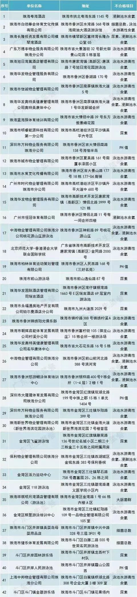 廣東省部分城市游泳場所水質(zhì)抽檢不合格場所名單(第一批)