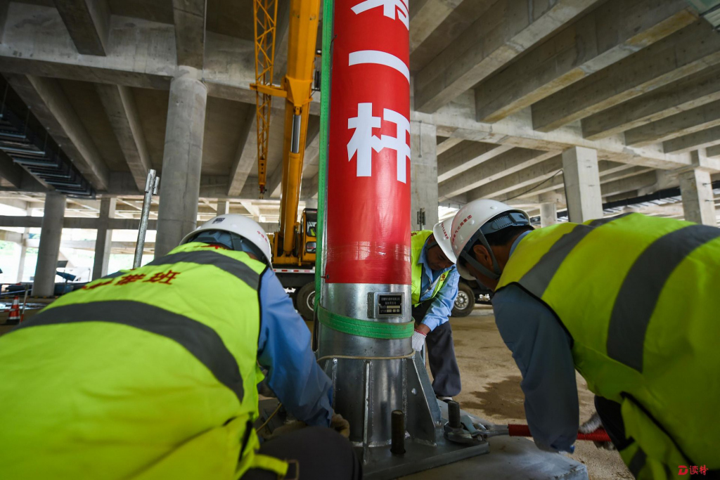 深圳特區(qū)報2019年8月17日訊 8月16日,地鐵8號線一期工程立起接觸網第一桿,拉開了全線系統(tǒng)設備安裝施工序幕。