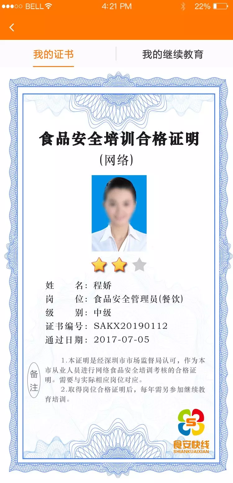 每個崗位考題滿分100分,可以重復(fù)考試,以最高分為最終結(jié)果,除食品安全管理員以外的崗位,得80分者即時(shí)生成電子合格證書,個人依據(jù)實(shí)際需要可以考取多項(xiàng)崗位合格證明。
