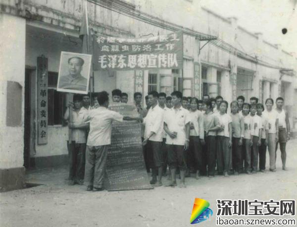 一張泛黃的老照片中,大多數(shù)人物都處在風(fēng)華正茂的年齡,赤著腳,舉著宣傳的橫幅,為血絲蟲病防治工作進(jìn)行宣傳,生動(dòng)地再現(xiàn)了“赤腳醫(yī)生”年代傳染病高居不下,生活艱苦不易,缺醫(yī)少藥的場(chǎng)景。盡管當(dāng)時(shí)的醫(yī)療設(shè)備十分簡(jiǎn)陋,除了一個(gè)藥箱,幾片普通的藥片,一支針筒,幾塊紗布,別的就少得可憐??稍倏嘣匐y,這些赤腳醫(yī)生們,仍是盡職盡責(zé),滿腔熱情地為人民服務(wù)。