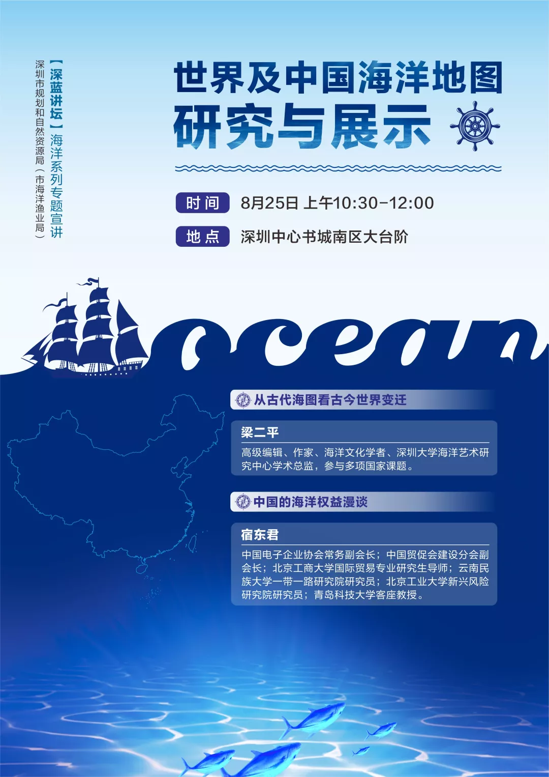 麥哲倫完成了第一次環(huán)球航行、哥倫布發(fā)現(xiàn)了新大陸、迪亞士最早探險至非洲最南端好望角、達伽馬開辟了通往印度的新航線…… 2000多年前,在茫茫大海上 裝備簡陋的航海者 取暖靠抖、通訊靠吼 沒有網(wǎng)絡、沒有手機、沒有GPS …… 卻能在廣闊無邊的大海中 找到心之所向的目的地 這是因為 他們有一張神奇的圖——海圖 梁二平:從古代海圖看古今世界變遷 世界上這一次又一次的航海大發(fā)現(xiàn),或者是由黃金、白銀、香料、瓷器、黑奴貿(mào)易等所引發(fā)的大侵略、大移民、大變革,都在一張小小的圖中展現(xiàn)得淋漓盡致。 大航海時代早期,西班牙、葡萄牙稱霸海洋,出盡了風頭,靠的就是海圖。后來英國擊敗荷蘭,意識到光靠戰(zhàn)爭是控制不了海洋的,更重要的是海洋知識。于是,英國設立了一個水文部,專門進行測量和制作海圖。這便是一代“海上霸主”崛起的關(guān)鍵。 每一幅海圖 都承載著豐富的地理、社會及歷史信息 不同時代、地域,不同文化背景下的海圖繪制者 對空間有著不同的理解 描繪世界的方式也有所不同 海圖一步一步從文字描述到精確標注 東西方海圖相互交融發(fā)展 為海洋變遷提供了真實的見證 一張小小的海圖 卻扮演著舉足輕重的“角色” 其實,它也和海洋權(quán)益 也有著密不可分的關(guān)系 宿東君:中國的海洋權(quán)益漫談 談及主權(quán)問題 我們總是滿懷著一腔熱血 看紀錄片時 海上時不時會漂浮著一個個小浮標 想知道小浮標對海洋科技考察有什么作用? 中國先驅(qū)又是如何歷盡艱難險阻 主張屬于中國的海洋權(quán)益的? 想知道引發(fā) 南海問題、釣魚島問題的“來龍去脈”嗎? 以上的種種疑問 都將在8月25日的“”深藍講壇” 一同為你揭曉! “深藍講壇” 2017年5月,《全國海洋經(jīng)濟發(fā)展“十三五”規(guī)劃》明確提出推進深圳建設全球海洋中心城市,在投融資、服務貿(mào)易、商務旅游等方面進一步提升對外開放水平和國際影響力,打造成為“21世紀海上絲綢之路”的排頭兵和主力軍;2018年9月,市委市政府印發(fā)《關(guān)于勇當海洋強國尖兵加快建設全球海洋中心城市的決定》及實施方案;2019年,深圳創(chuàng)建全球海洋中心城市納入到《粵港澳大灣區(qū)規(guī)劃發(fā)展綱要》和《關(guān)于支持深圳建設中國特色社會主義先行示范區(qū)的意見》。 為讓社會了解這一重要政策,計劃通過開展“深藍講壇”專題系列活動,通過專家講授、市民互動等活動,請市民對我市海洋發(fā)展政策、主要目標和實施路徑等建言獻策,在擴大影響面的同時收集好的意見和建議,以更好地推動我市海洋各項工作的順利開展,為我市創(chuàng)建全球海洋中心城市營造氛圍,奠定思想基礎。 現(xiàn)在,“深藍講壇”專題系列活動真的來了! 8月25日 以“世界及中國海洋地圖研究與展示”為主題 2019年首場“深藍講壇”海洋系列專題宣講活動 即將拉開帷幕