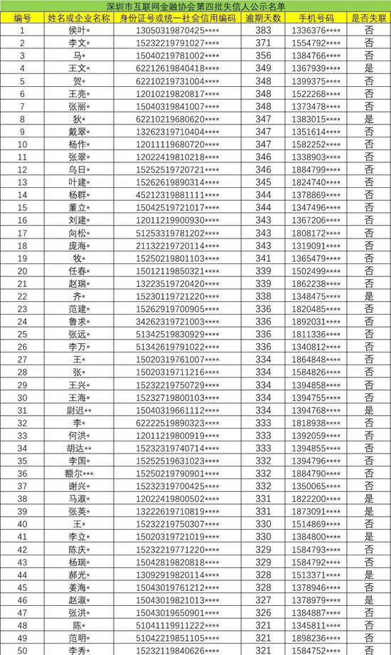 原標題:深圳第四批網(wǎng)貸失信人黑名單公布!有你認識的嗎?