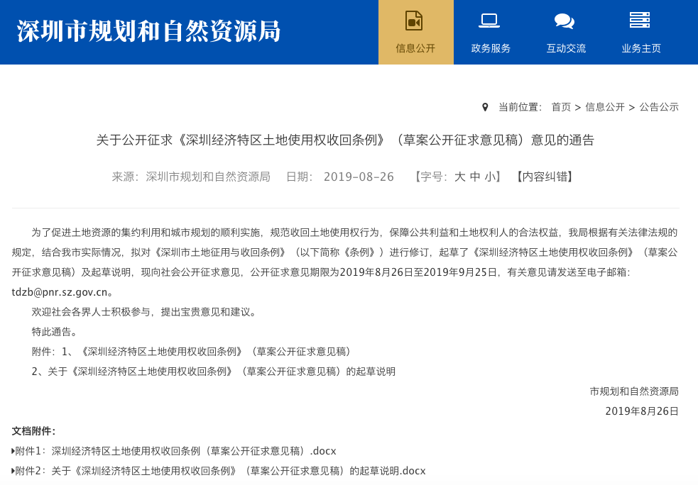 據(jù)了解,目前該《條例》(草案公開征求意見稿)正向社會公開征求意見,公開征求意見期限為2019年8月26日至2019年9月25日,有關(guān)意見請發(fā)送至電子郵箱:tdzb@pnr.sz.gov.cn。