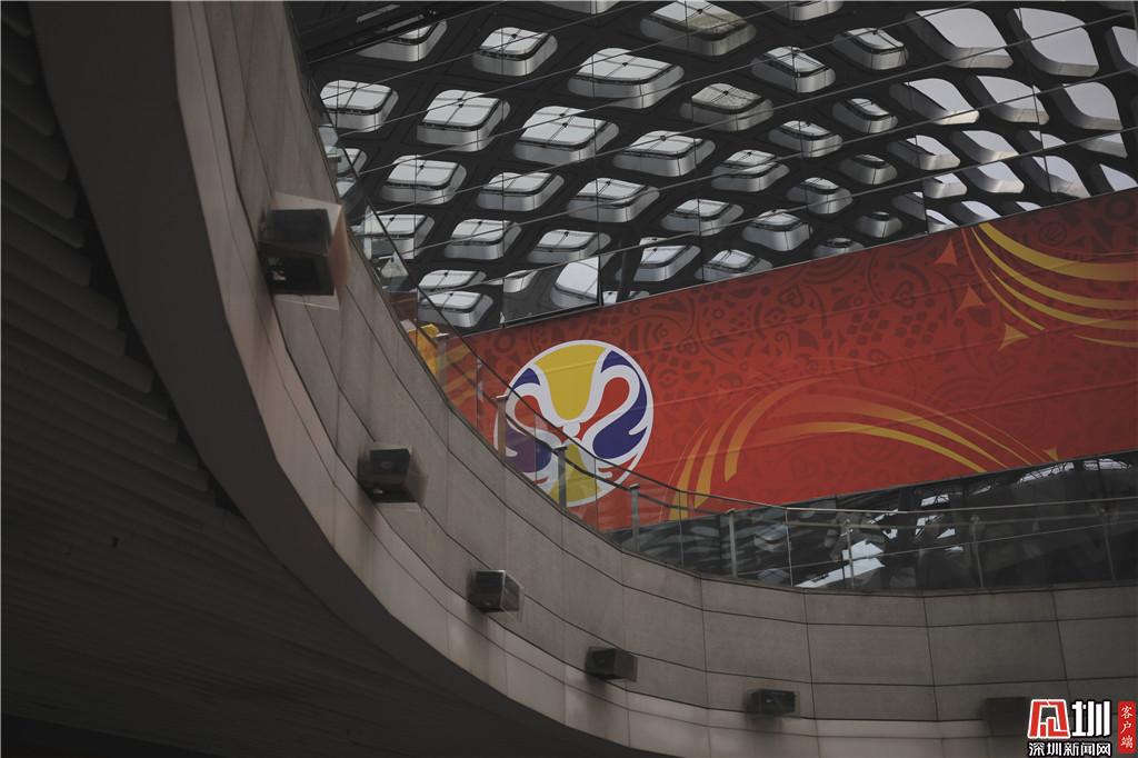 深圳灣體育中心外部,宣傳牌已經立起來。