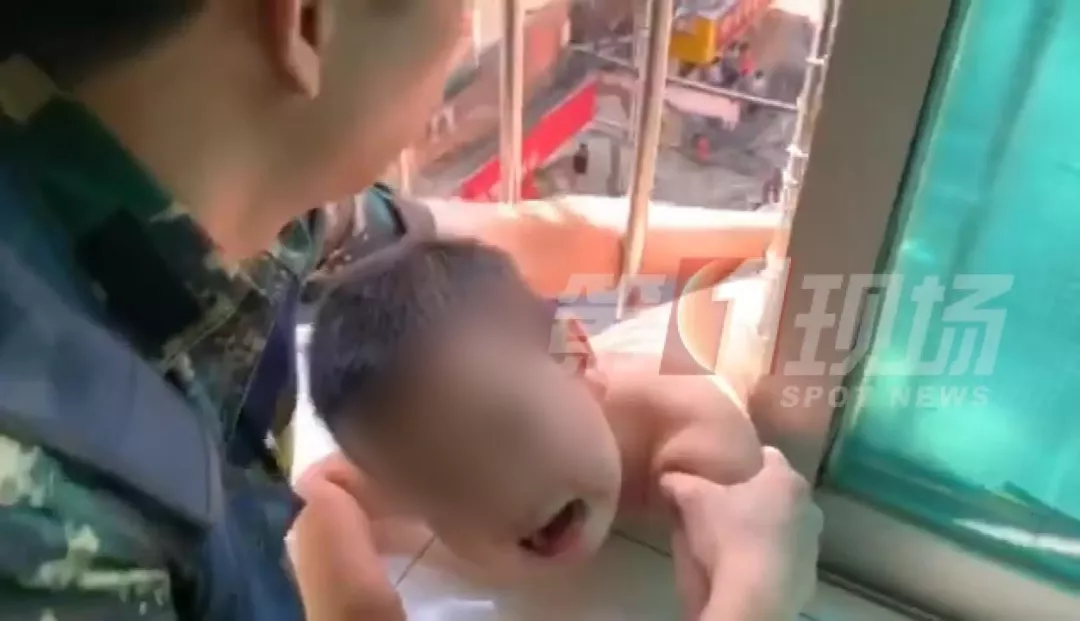 原標題:驚險!兩歲男童身懸半空,關鍵時刻,他們一腳破門!