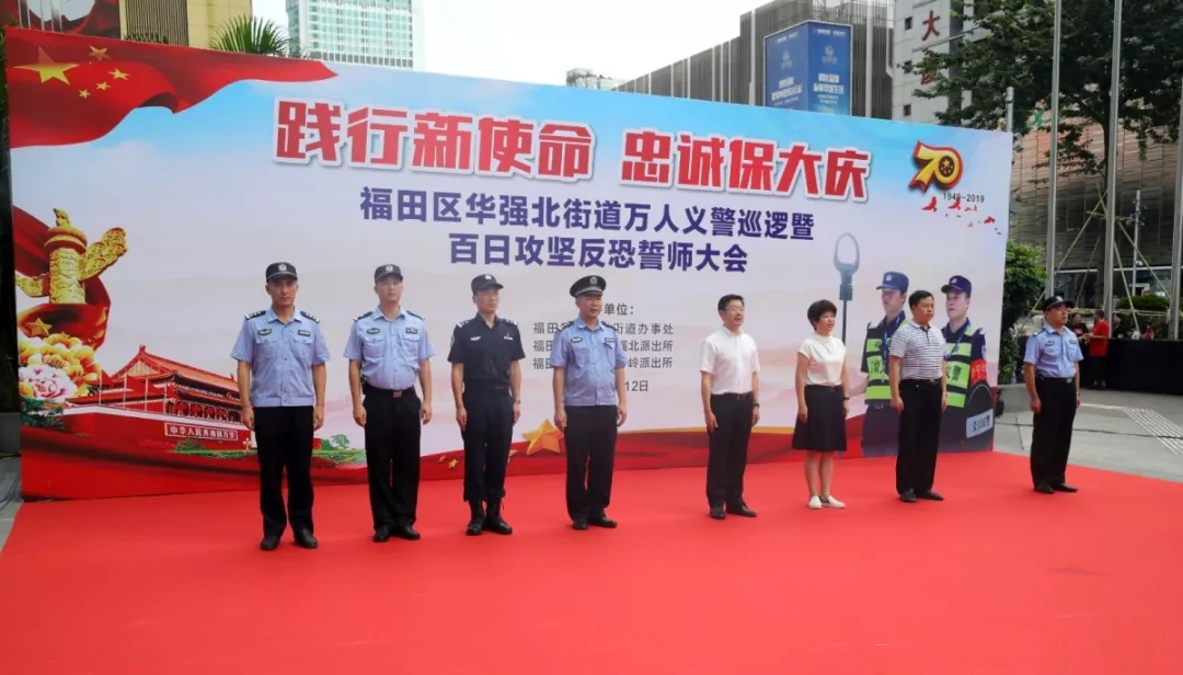 據(jù)了解,為全面推進群防群治建設,夯實基層基礎工作,拓寬群防群治領(lǐng)域,提升群防群治效能,筑牢社會治安防控體系,12日上午9時30分,深圳市福田區(qū)華強北街道萬人義警巡邏暨百日攻堅反恐誓師大會在華強酒店廣場舉行,華強北街道辦黨工委書記陳曉中,福田公安分局副局長譚慶彬,華強北街道副書記楊華蘭,福田公安分局治安科科長左樂,華強北派出所副所長張瓊漫、黃強,通心嶺派出所副所長劉景波等相關(guān)部門負責人參加儀式并發(fā)表講話。本次大會的舉行,意味著福田義警隊伍再添中堅力量。