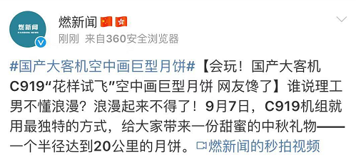 近日,C919機組在空中給大家畫了個巨型月餅