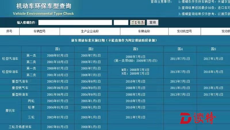 此外,2017年1月1日前生產(chǎn)的或進(jìn)口的機(jī)動車可通過登錄機(jī)動車環(huán)保網(wǎng)網(wǎng)站自助查詢排放標(biāo)準(zhǔn)信息。2017年1月1日后生產(chǎn)的或進(jìn)口的機(jī)動車以該車的《環(huán)保信息隨車清單》為準(zhǔn),清單上已備注該車的排放標(biāo)準(zhǔn),同時清單上也有二維碼,通過掃描二維碼的結(jié)果可判斷該清單內(nèi)容是否屬實(shí);如無《環(huán)保信息隨車清單》,可通過機(jī)動車環(huán)保信息公開平臺查詢(http://219.141.229.209/ve/vin/index)。