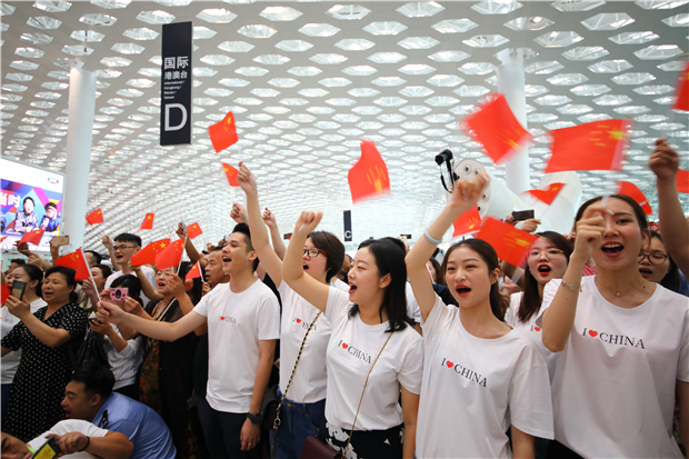 機(jī)場(chǎng)航站樓成“紅色海洋” 他們以這種方式慶祝新中國成立70周年
