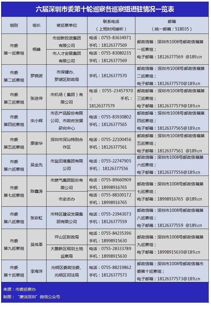 近日,根據(jù)深圳市委巡察工作部署,六屆市委第十輪巡察進駐已全部完成,10個巡察組分別對市保健辦、市機場(集團)有限公司、市鹽田港集團有限公司、市燃氣集團股份有限公司、市農產品股份有限公司、市特區(qū)建設發(fā)展集團有限公司、市創(chuàng)新投資集團有限公司、市人才安居集團有限公司等8個單位黨組織開展常規(guī)巡察,對深圳市深汕特別合作區(qū)和市史志辦開展機動式巡察,對市政府發(fā)展研究中心黨組開展巡察“回頭看”;提級對光明區(qū)委政法委開展掃黑除惡專項斗爭進行專項巡察,對羅湖區(qū)財政局、坪山區(qū)財政局黨組開展巡察“回頭看”,對光明區(qū)司法局、大鵬新區(qū)規(guī)劃土地監(jiān)察局黨組開展機動式巡察。
