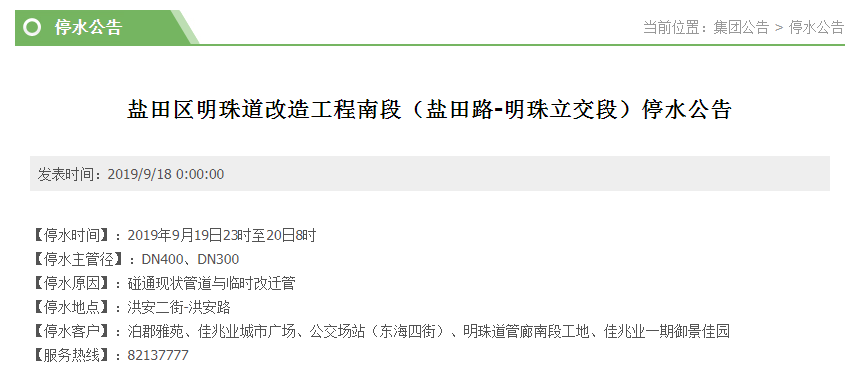原標題:做好準備!19日至20日福田、鹽田這些地方將停水