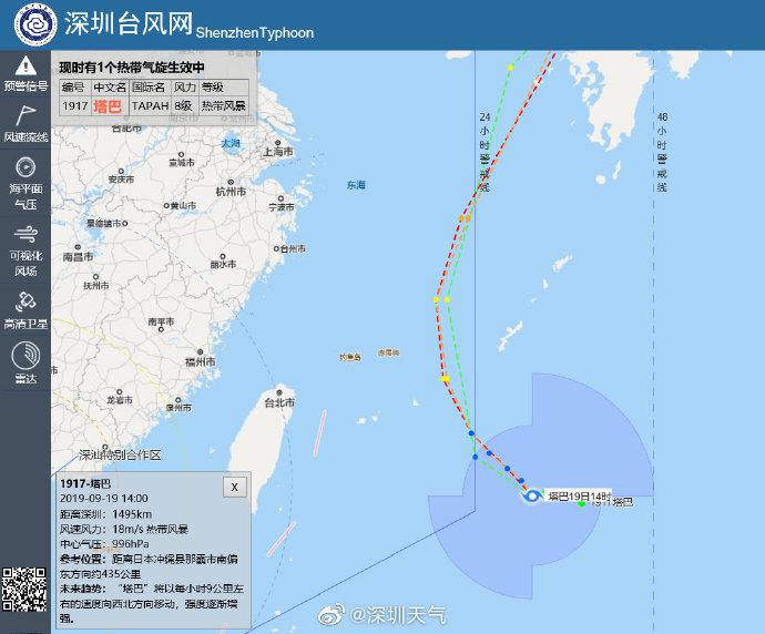 預(yù)計“塔巴”將以每小時10公里左右的速度緩慢向西北方向移動,強(qiáng)度逐漸加強(qiáng),后期逐漸轉(zhuǎn)趨朝鮮半島南部海域,對深圳無直接風(fēng)雨影響。