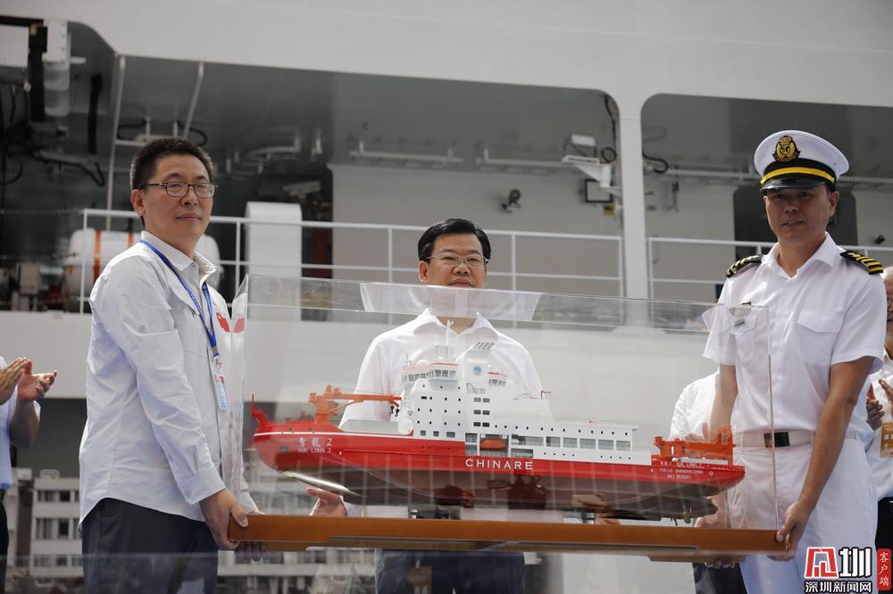 雪龍?zhí)柎L(zhǎng)(右)向深圳贈(zèng)送禮物