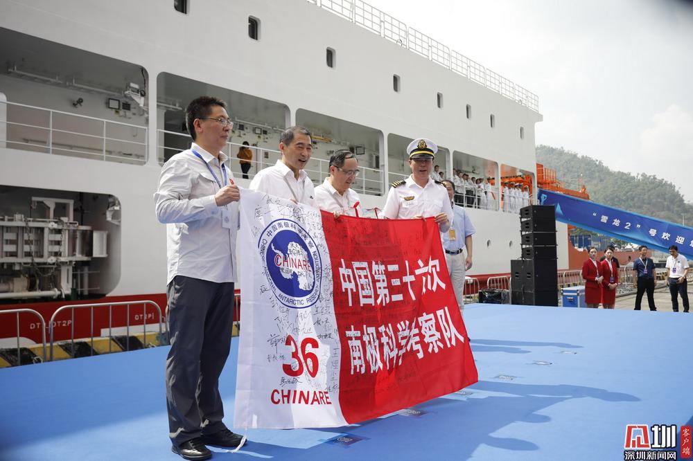 當(dāng)天下午,近百名市民、學(xué)生及各市直部門和中央駐深涉海部門代表看到“雪龍2”號(hào)船靠泊碼頭,發(fā)出熱烈的歡呼聲,他們揮舞著手中的紅旗熱烈歡迎“雪龍2”號(hào)科考船及國(guó)家第36次南極考察隊(duì)抵達(dá)深圳。當(dāng)船舶靠穩(wěn)并架設(shè)好舷梯后,深圳市政府副市長(zhǎng)、黨組成員黃敏等領(lǐng)導(dǎo)攜兩位少先隊(duì)員迎接考察隊(duì)代表,并獻(xiàn)花握手致意,表達(dá)誠(chéng)摯的歡迎和衷心的祝福。