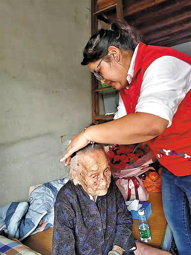 陳汝金老人喜歡打本地花牌,打到了99歲,后來腰部退化,不能久坐,她才沒有再打花牌。吃飯方面,陳汝金也有自己的主張,不求好不求貴,簡簡單單活到老,“外婆以前是生產(chǎn)隊(duì)的炊事員,直到去年她還能自己做飯呢?!痹谖男〗憧磥恚绱碎L壽的外婆也沒有特別的養(yǎng)生之道,“保持好心態(tài),順其自然就是最長壽的秘方?!?/p>