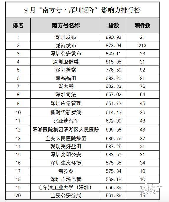 5個(gè)南方號(hào)首上榜,“深圳發(fā)布”蟬聯(lián)第一!“南方號(hào)·深圳矩陣”9月榜單出爐