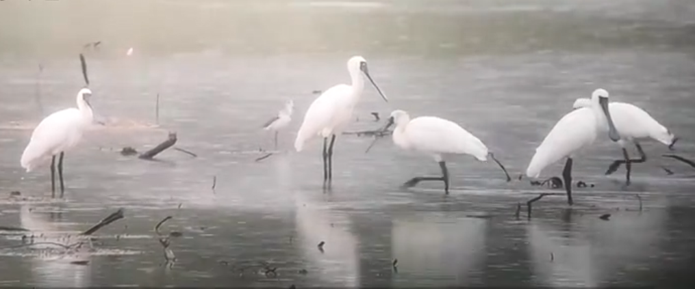 還沒(méi)入秋的深圳迎來(lái)了首批來(lái)深越冬的黑臉琵鷺?lè)N群,