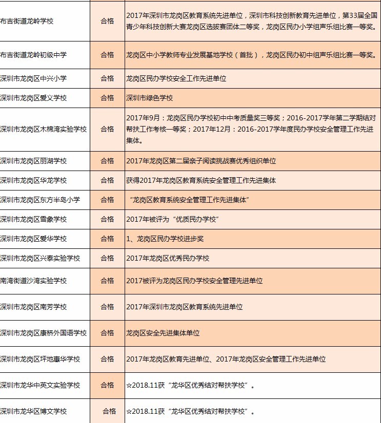 近日,深圳教育局在其官網發(fā)布深圳市民辦中小學辦學情況信息公告。最新公告顯示:2018年度年檢結論為“不合格”的學校共有8所,“基本合格”的有12所,其他均為“合格”或“不滿一年未年檢”。其中,不合格的8所學校分別為:深圳市富源學校、深圳市展華實驗學校、深圳市龍華區(qū)愛孚實驗學校、深圳市龍華區(qū)寶文學校、深圳市龍華區(qū)牛欄前學校、深圳市龍華區(qū)六一學校、深圳市龍華區(qū)博恒實驗學校和深圳市龍華區(qū)偉民小學。主要涉及違規(guī)招生問題。