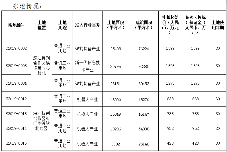 當(dāng)天,深圳市土地房產(chǎn)交易中心發(fā)布公告,受深圳市規(guī)劃和自然資源局深汕管理局委托,將以掛牌方式公開出讓位于深汕特別合作區(qū)的E2019-0002等7宗地使用權(quán)。掛牌期自2019年11月25日起至2019年12月4日15時(shí)止。宗地情況如下: