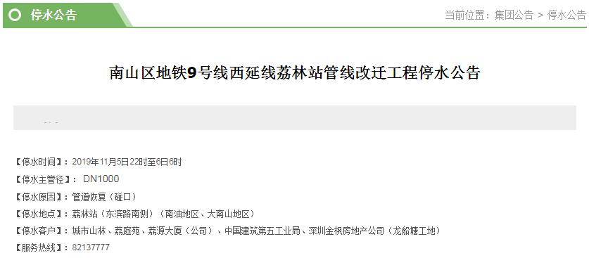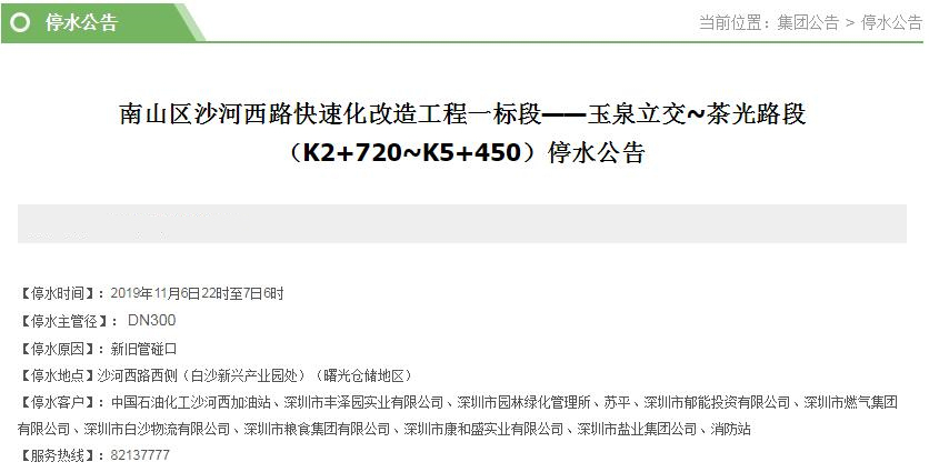 停水客戶:中國(guó)石油化工沙河西加油站、深圳市豐澤園實(shí)業(yè)有限公司、深圳市園林綠化管理所、蘇平、深圳市郁能投資有限公司、深圳市燃?xì)饧瘓F(tuán)有限公司、深圳市白沙物流有限公司、深圳市糧食集團(tuán)有限公司、深圳市康和盛實(shí)業(yè)有限公司、深圳市鹽業(yè)集團(tuán)公司、消防站