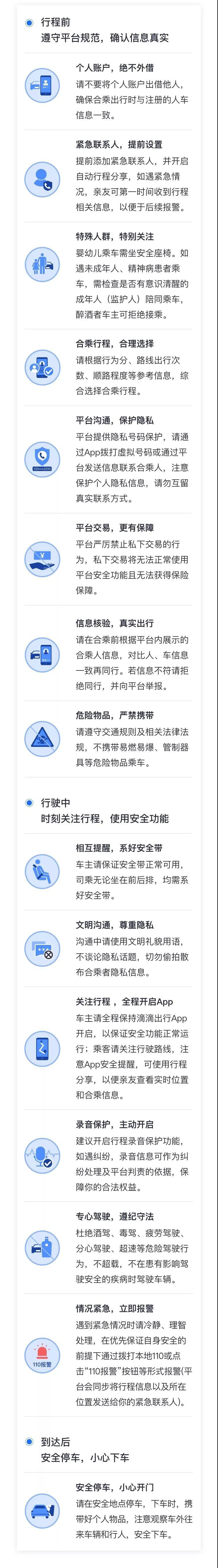 新方案顯示,試運(yùn)營(yíng)期間,將在以上7個(gè)城市首先提供5:00~23:00(女性5:00~20:00)、市內(nèi)中短途(50公里以內(nèi))的順風(fēng)車(chē)平臺(tái)服務(wù)。試運(yùn)營(yíng)期間,不收取信息服務(wù)費(fèi)。