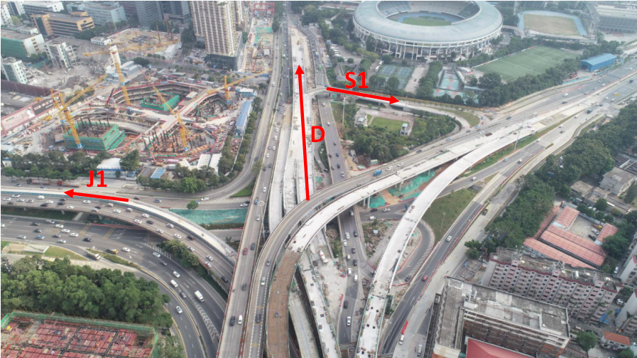 深圳特區(qū)報(bào)2019年11月9日訊 坂銀通道工程北環(huán)立交、泥崗立交橋梁主體工程將于11月12日完成最后1聯(lián)砼箱梁澆筑,迎來全線貫通。泥崗立交J1(北環(huán)大道轉(zhuǎn)泥崗東路東行)、D(北環(huán)大道轉(zhuǎn)上步北路南行)、S1(上步北路南行轉(zhuǎn)泥崗西路)匝道橋預(yù)計(jì)12月初開放通車。