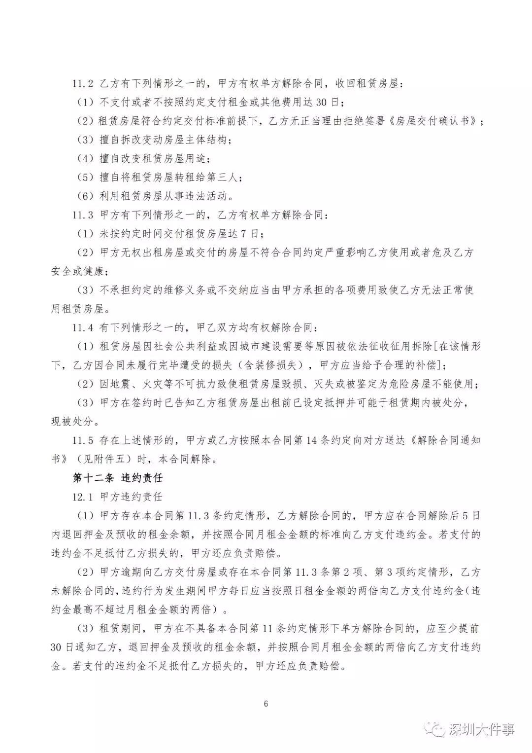7、強(qiáng)化落實(shí)房屋安全主體責(zé)任,新版合同保留了舊版合同附件《深圳市房屋租賃安全管理責(zé)任書》,要求租賃雙方當(dāng)事人必須簽訂該責(zé)任書,否則房屋租賃主管部門不受理合同登記備案。