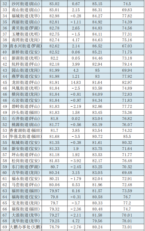 10月份,各區(qū)排名榜上,鹽田區(qū)“勝不驕”,繼續(xù)以優(yōu)異的成績(jī)保持第1,拿下“五連冠”,且在今年前10個(gè)月的測(cè)評(píng)中,鹽田區(qū)已經(jīng)8次取得第一名。羅湖區(qū)則“敗不餒”,在去年連續(xù)排名靠后甚至墊底的情況下,毫不氣餒,正視問題,補(bǔ)齊短板,理順機(jī)制,今年指數(shù)得分和排名穩(wěn)步提升,10月份更奪得榜眼,現(xiàn)場(chǎng)考察指數(shù)全市第1,轄區(qū)3個(gè)街道進(jìn)入全市排名前6,5個(gè)進(jìn)入前15。而龍華區(qū)和龍崗區(qū)則連續(xù)兩月排在倒數(shù)后三,龍崗區(qū)平湖街道連續(xù)3個(gè)月排在后5,應(yīng)對(duì)照測(cè)評(píng)情況找問題,出實(shí)招,加大整治提升工作力度。