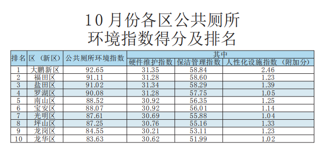 10月份公共廁所環(huán)境指數(shù)測(cè)評(píng)結(jié)果發(fā)布