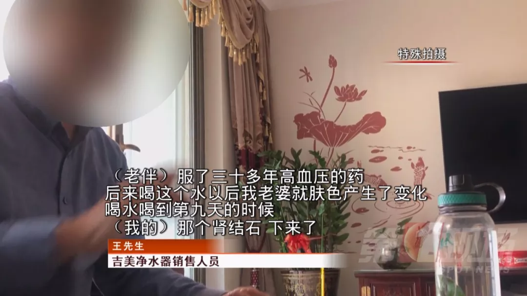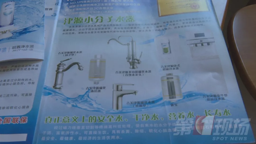 執(zhí)法人員來到客廳,盡管王先生的兒子矢口否認(rèn)家里在賣凈水器,但桌子上擺放著宣傳單頁,王先生正在推銷凈水器,一切都說明了問題。隨后王先生帶執(zhí)法人員來到廚房,繼續(xù)展示凈水器的療效。王先生的老伴兒說,除了他們自家喝磁化水,親戚們也都在他的推薦下使用這款凈水器。