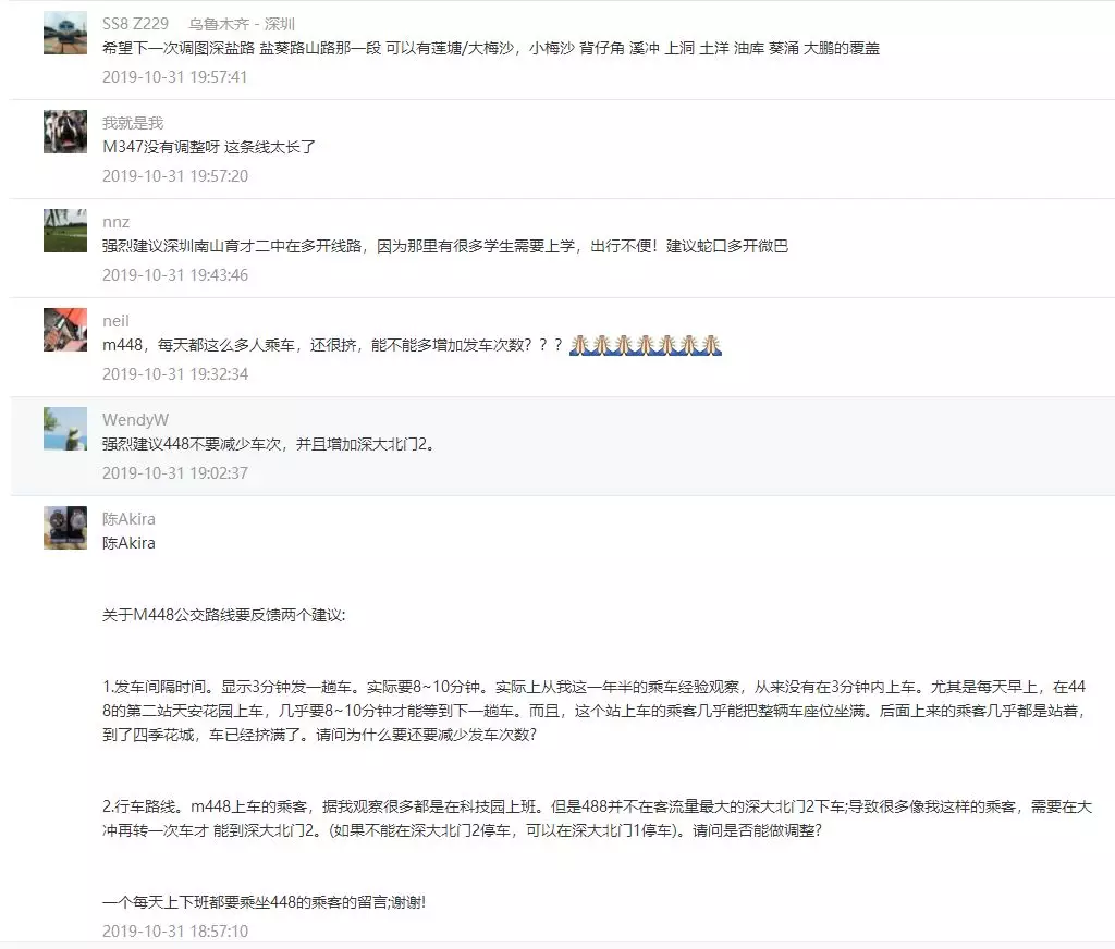 見圳客戶端·深圳新聞網(wǎng)2019年11月27日訊 上個(gè)月的最后一天,深圳市公共交通管理局發(fā)布了《2019年第二批公共汽車線路規(guī)劃方案》(征求意見稿),不少小伙伴都在留言區(qū)建言。