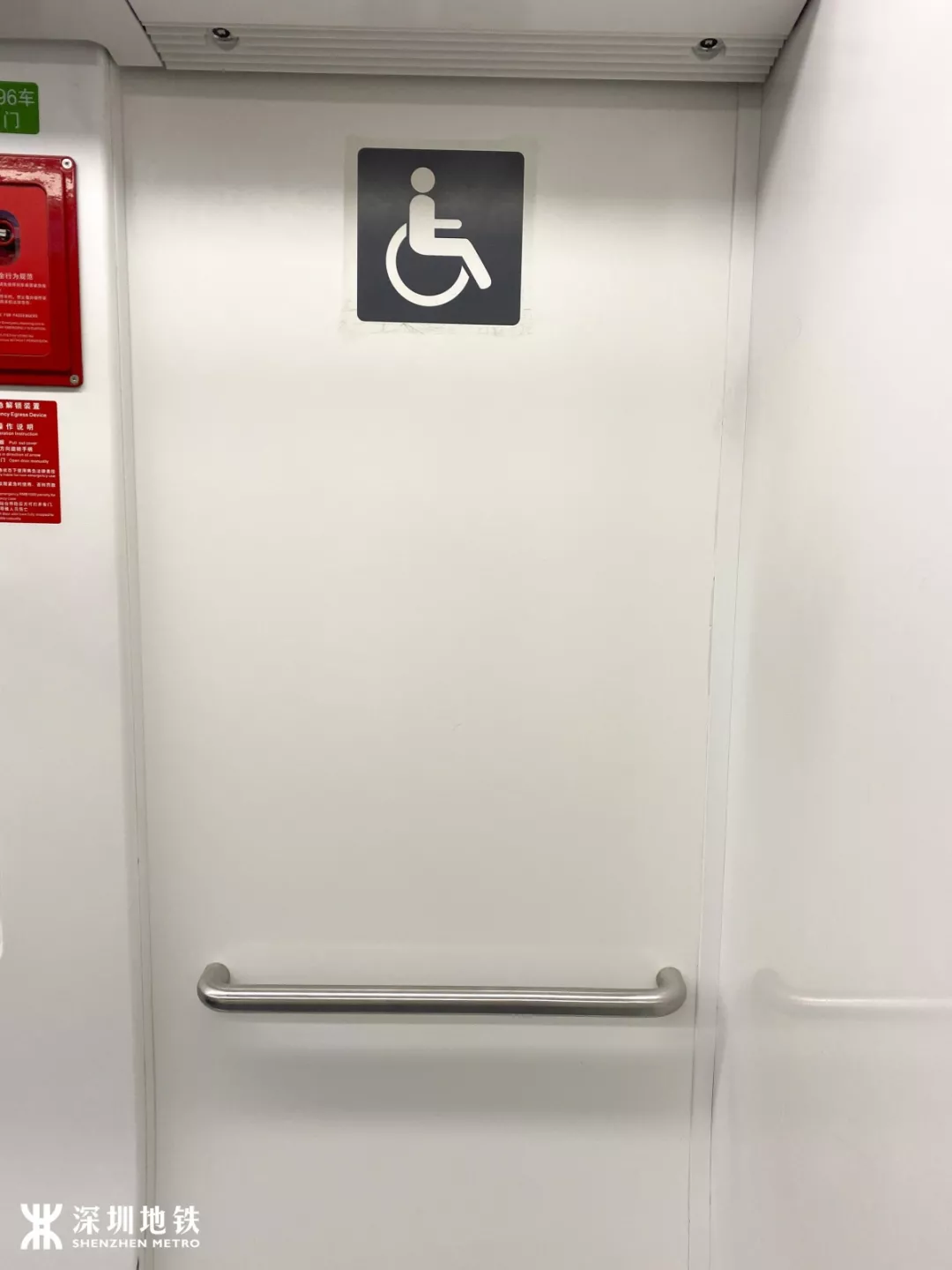 在每一輛列車內(nèi)部,相應(yīng)的位置都貼有輪椅乘車標(biāo)識,如果乘車時遇見殘疾人士,移開你的腳步,他們比你更需要這個位置。