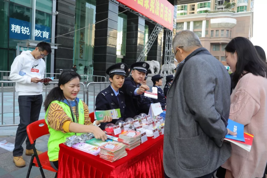 為全面貫徹落實習(xí)近平總書記全面依法治國新理念新思想新戰(zhàn)略,增強全社會憲法意識,弘揚憲法精神,深圳市公安局福田分局響應(yīng)上級號召,于12月4日下午福田區(qū)馬成時代廣場開展了“12·4”國家憲法宣傳日活動。福田公安分局法制科牽頭組織人口科、治安科、刑警大隊、經(jīng)偵大隊、網(wǎng)警大隊、禁毒大隊、出入境管理大隊單位骨干民警參加此次活動。