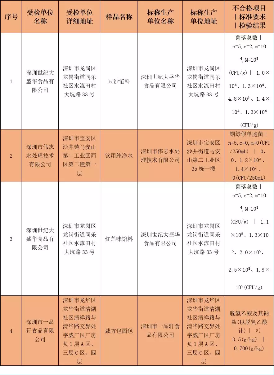 本次共抽檢生產(chǎn)環(huán)節(jié)食品242批次,涉及生產(chǎn)環(huán)節(jié)經(jīng)營主體144家次,共檢測食品指標2622項次。其中檢出不合格樣品4批次,涉及不合格食品類別為糕點1批次,其他食品2批次,飲料1批次;涉及不合格項目類別為食品添加劑、微生物污染。