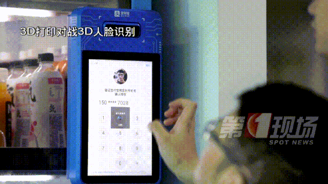 我們把頭模放在了自動(dòng)售賣(mài)機(jī)的識(shí)別系統(tǒng)前,支付系統(tǒng)并沒(méi)有直接通過(guò),而是發(fā)起了二次驗(yàn)證,輸入手機(jī)后,系統(tǒng)最終顯示支付失敗。