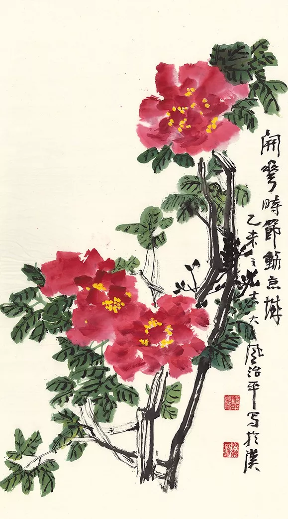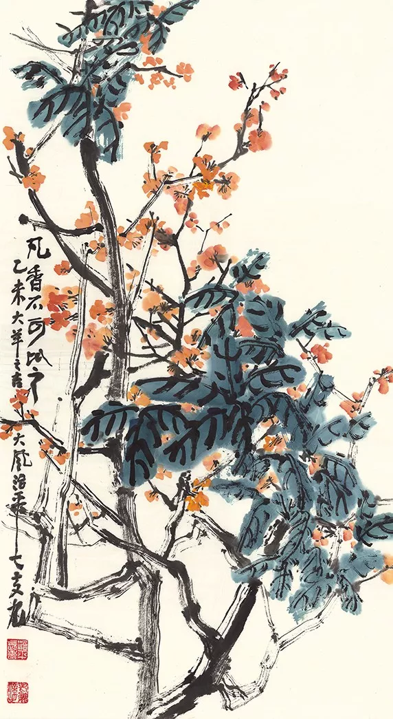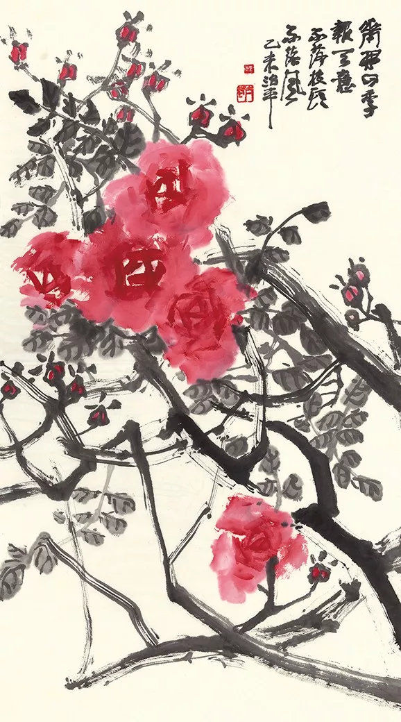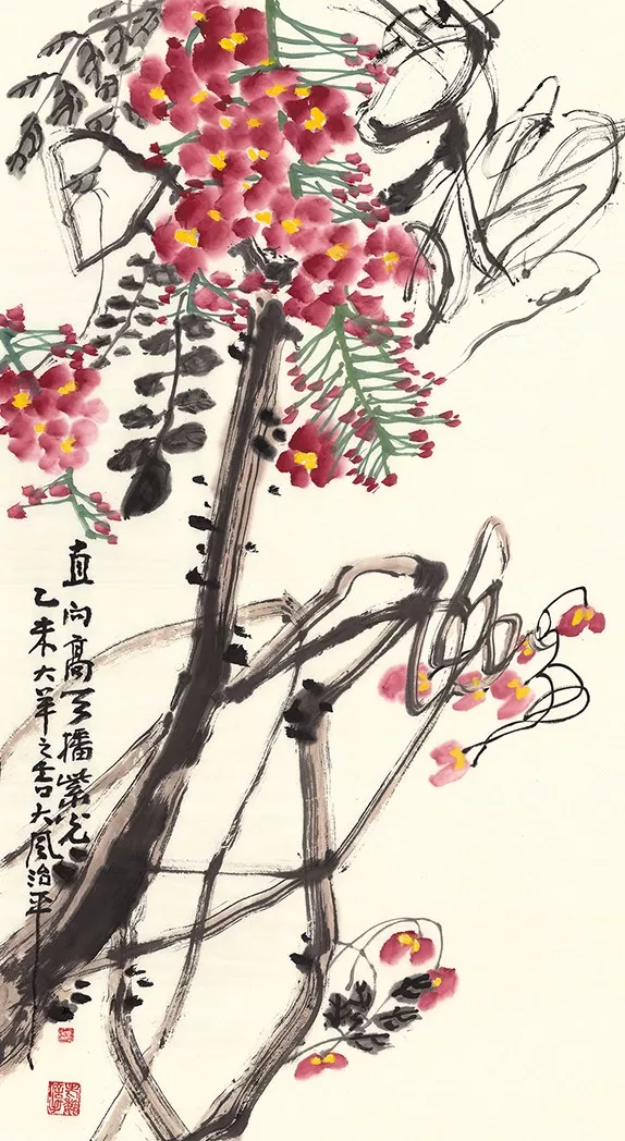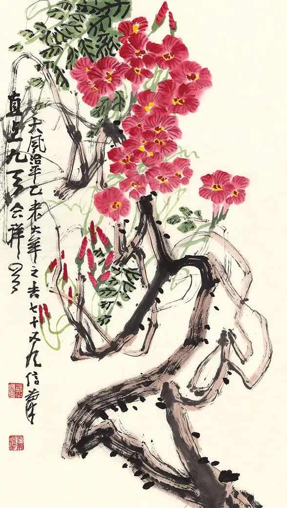 魏治平的藝術(shù)貴于創(chuàng)造,以書法入畫,畫中常見(jiàn)有篆書筆意。三十年前長(zhǎng)江日?qǐng)?bào)總編海洋先生,曾提筆寫下《魏瘋子傳奇》,洋洋灑灑八千言,一時(shí)間荊楚大地震動(dòng)。西泠印社理事朱妙根稱其“方寸之間有靈山,紅花墨葉又一派”。西泠印社執(zhí)行社長(zhǎng)、中國(guó)印學(xué)博物館館長(zhǎng)劉江先生為其第一本書畫作品集題簽書名。美國(guó)前總統(tǒng)老布什收有魏老書法作品“龍蛇競(jìng)走舞長(zhǎng)空、點(diǎn)染梅花分外紅。且賦新詩(shī)遙寄意,長(zhǎng)江密水兩相通”。印第安納州州立大學(xué)博物館大廳懸掛的便是魏老八尺紅梅詩(shī)書畫中堂。