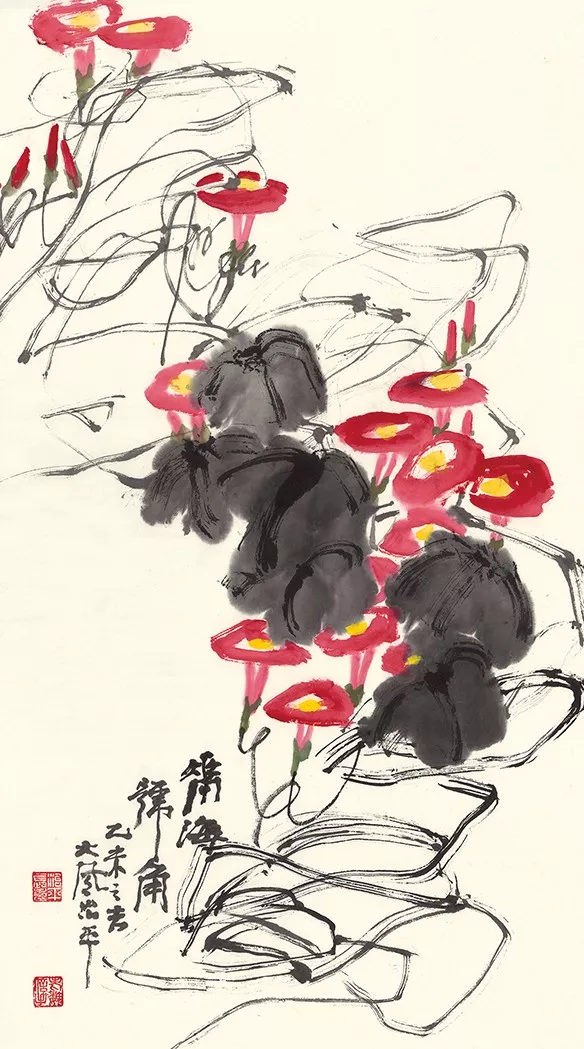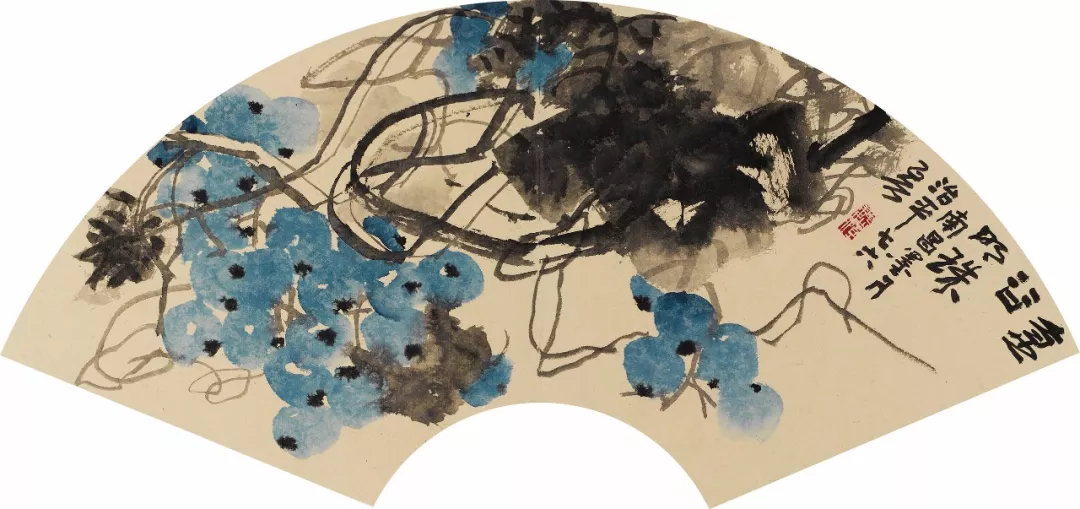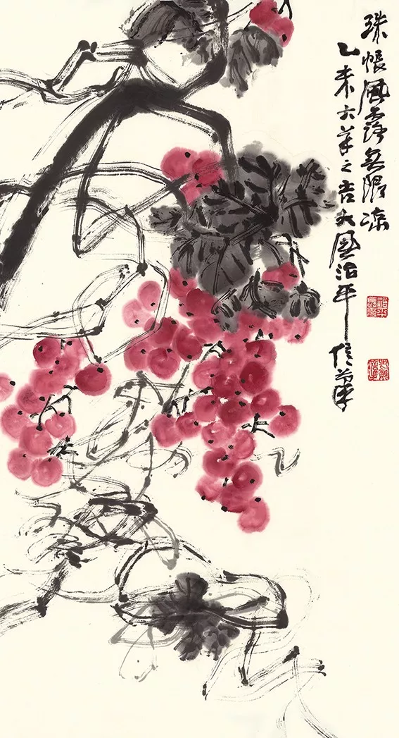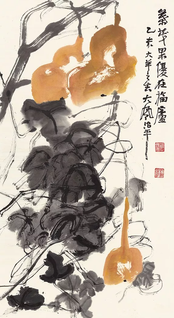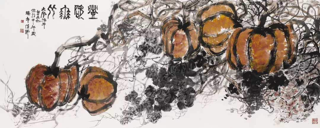魏治平的畫,尤以藤類見(jiàn)長(zhǎng),構(gòu)圖奇異,筆酣墨飽,瓜果菜蔬鳥蟲魚,無(wú)一不獨(dú)出心裁,氣象崢嶸,水墨淋漓之間極富創(chuàng)作精神,他筆下的南瓜、紫藤、凌霄、葡萄等更有齊白石、吳昌碩之風(fēng),自成一派,奔放不離法度,神微孕育氣魄。