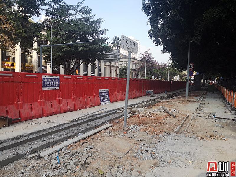 福田區(qū)福中三路和民田路的施工現(xiàn)場,道路被挖,一輛挖掘機停在道路上。