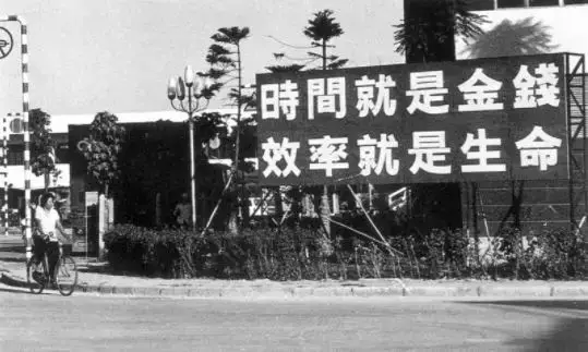 1982年,蛇口豎起“時(shí)間就是金錢,效率就是生命”的標(biāo)語(yǔ)牌。來(lái)源:深圳特區(qū)報(bào)江式高攝