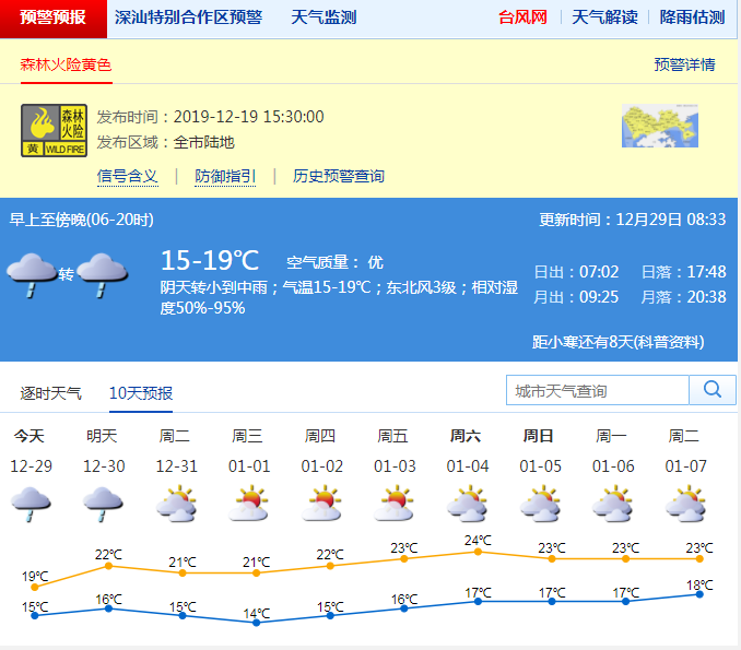 見圳客戶端·深圳新聞網(wǎng)2019年12月29日訊 大雨和冷空氣在年底前在深圳最后一次沖業(yè)績來了!據(jù)深圳市氣象臺29日凌晨4:57發(fā)布的最新預(yù)報(bào),今天周日有中到大雨,伴有零散雷暴,氣溫也將是近幾天的最低,為15-19℃。