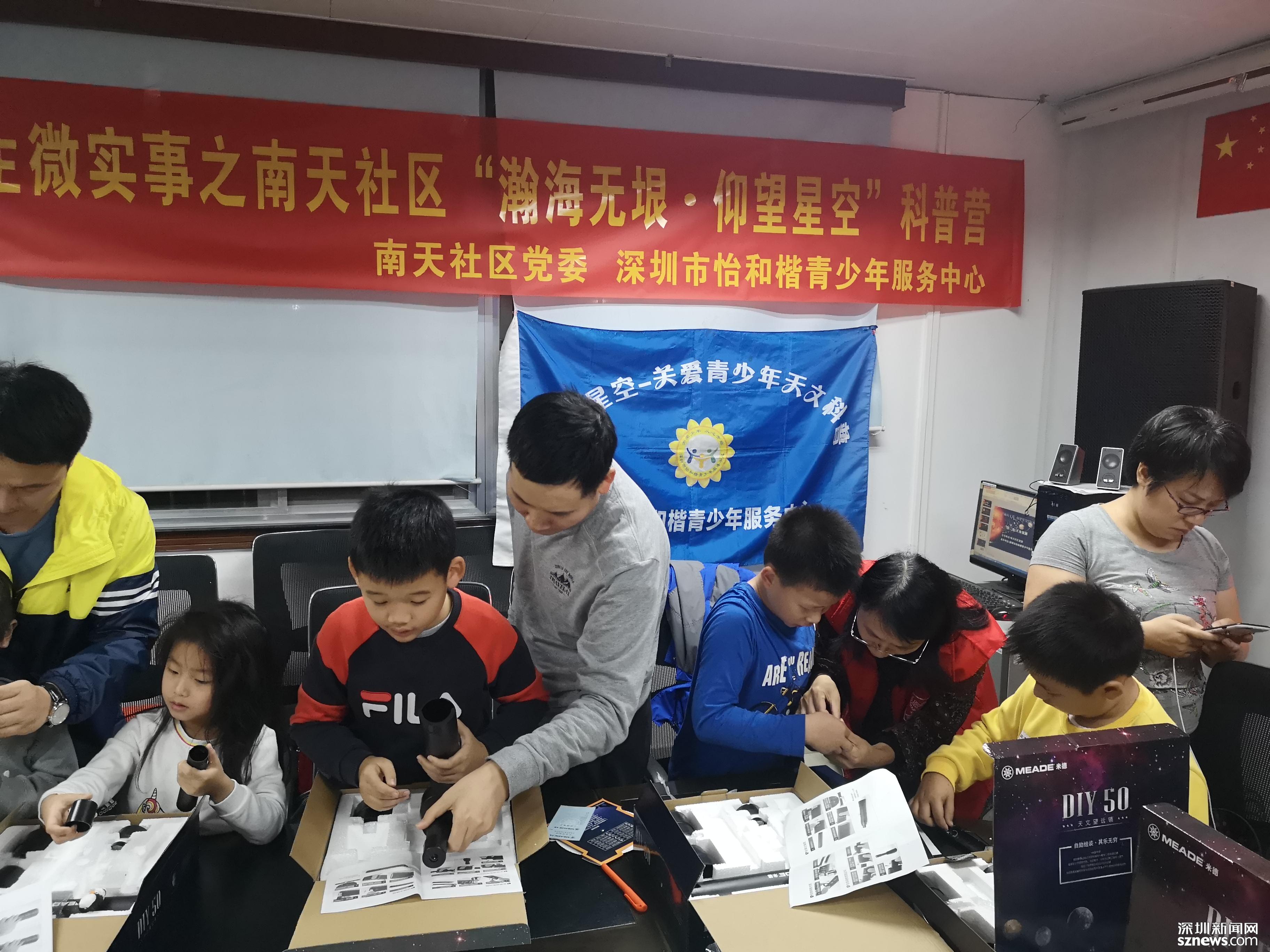 見(jiàn)圳客戶端、深圳新聞網(wǎng)2020年1月7日訊 為全面貫徹落實(shí)《全民科學(xué)素質(zhì)行動(dòng)計(jì)劃綱要》,提高福田區(qū)園嶺街道南天社區(qū)青少年科學(xué)素質(zhì)。南天社區(qū)高度重視社區(qū)青少年居民天文科普知識(shí),為青少年打開宇宙夢(mèng)想之門。由南天社區(qū)黨委主辦,深圳市怡和楷青少年服務(wù)中心承辦的《瀚海無(wú)垠仰望星空科普營(yíng) 》活動(dòng)在南天社區(qū)及社區(qū)天臺(tái)戶外如火如荼展開。