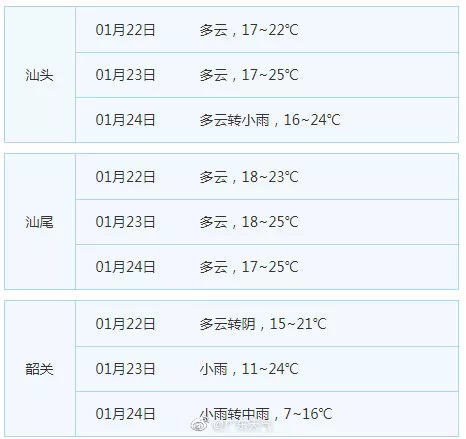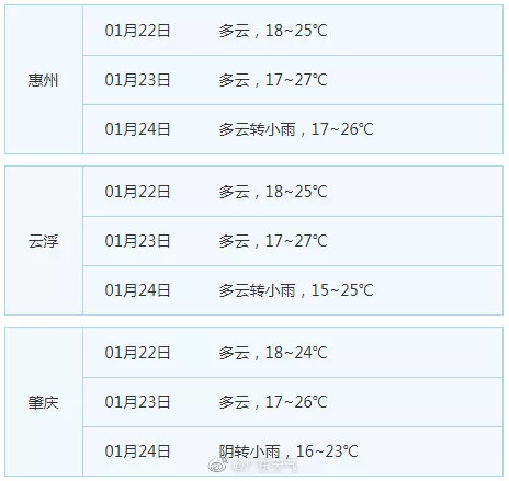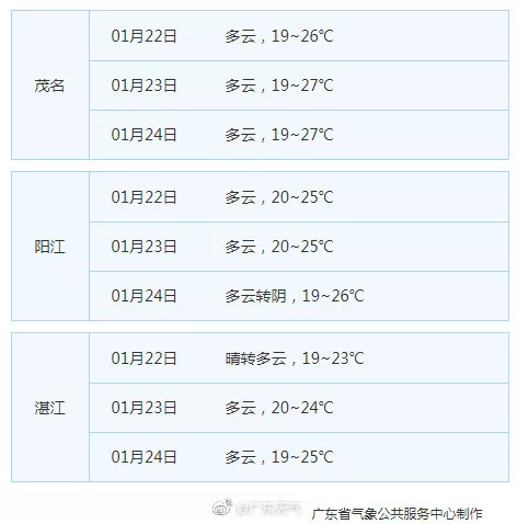 廣東21個(gè)地市的天氣預(yù)告