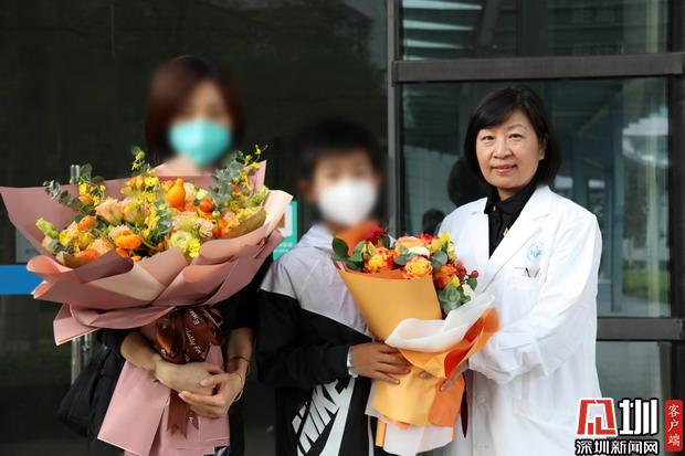 出院患者與醫(yī)生合影(深圳市衛(wèi)健委供圖)