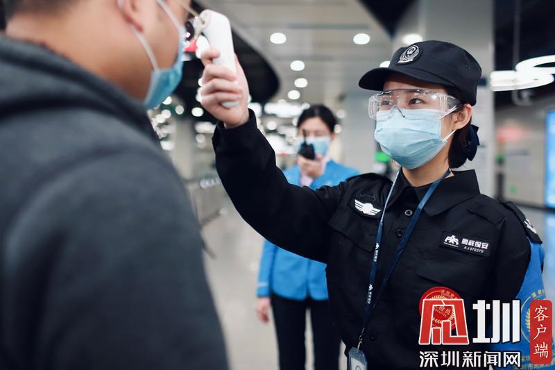 深圳地鐵工作人員對往來乘客進行體溫檢測。