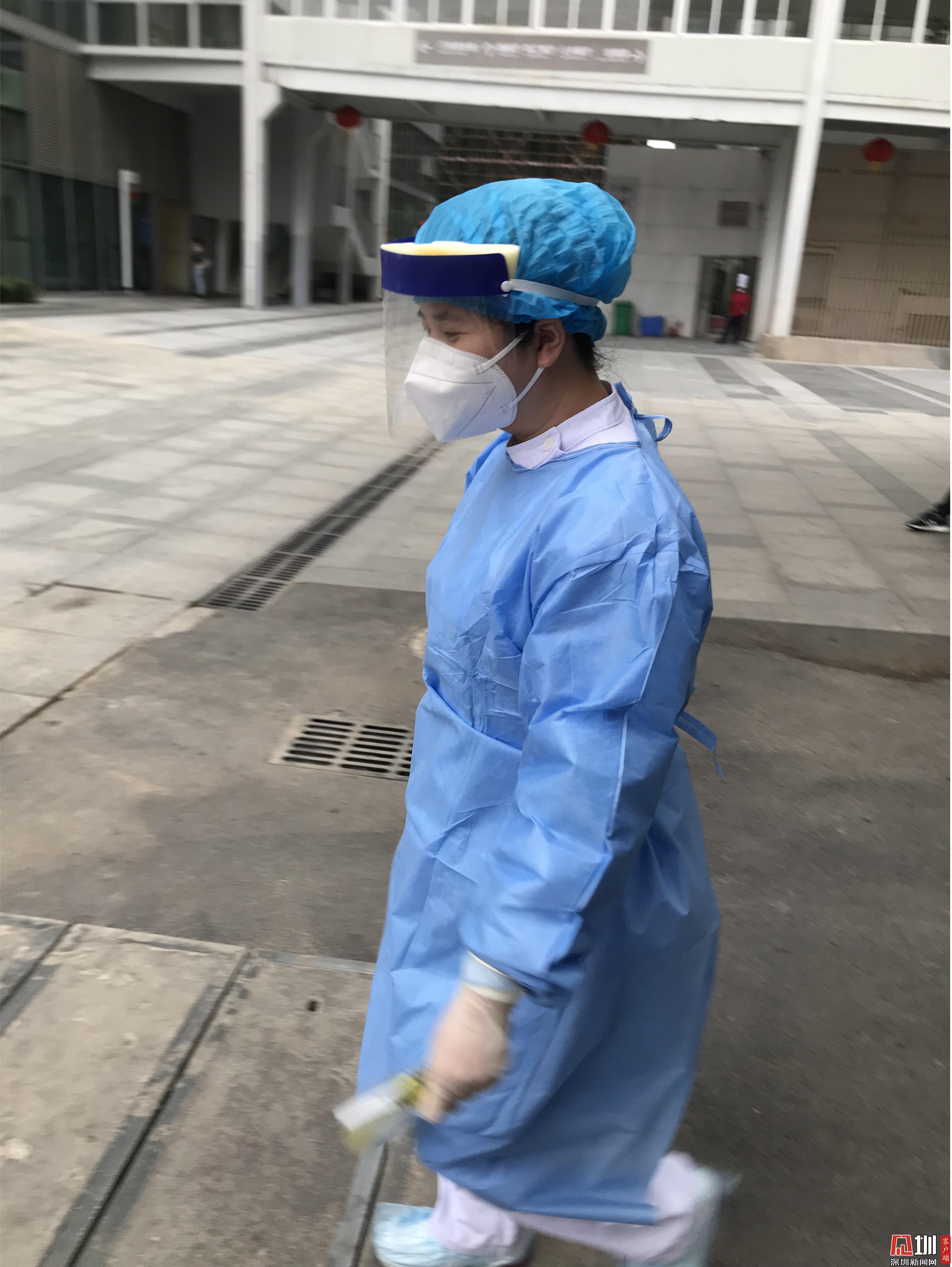 1月25日,大年初一,護士于慧文記著父母的叮囑,抱了抱孩子和老公,帶著復雜的心情到華中科技大學協(xié)和深圳醫(yī)院發(fā)熱門診支援。按照要求穿好隔離衣,做好了防護走進了工作區(qū),工作人員在有序的匆忙工作著,當看到患者們殷切眼神的那一瞬間,使命感和責任感重重的把于慧文圍繞著,之前的浮想聯(lián)翩全部煙消云散,馬上進入到了工作狀態(tài)。