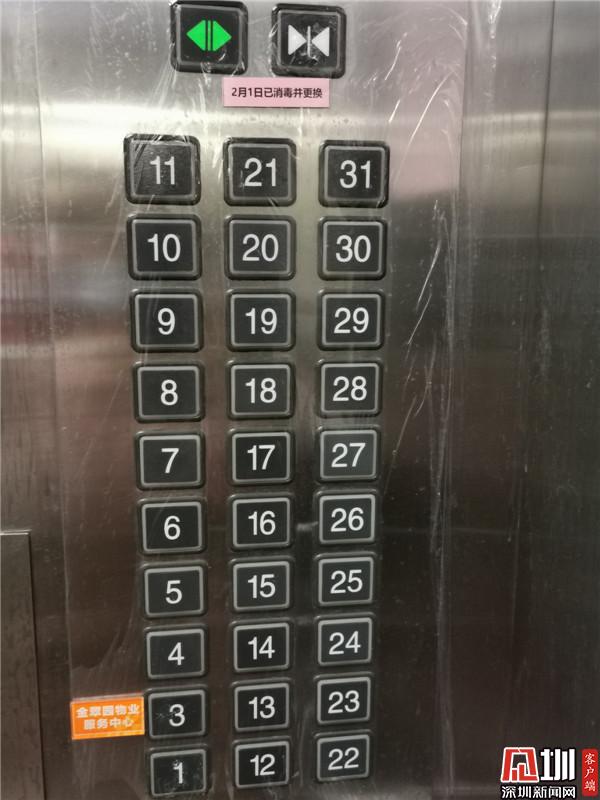 電梯摁鍵貼上了保鮮膜并注明當天已消毒。