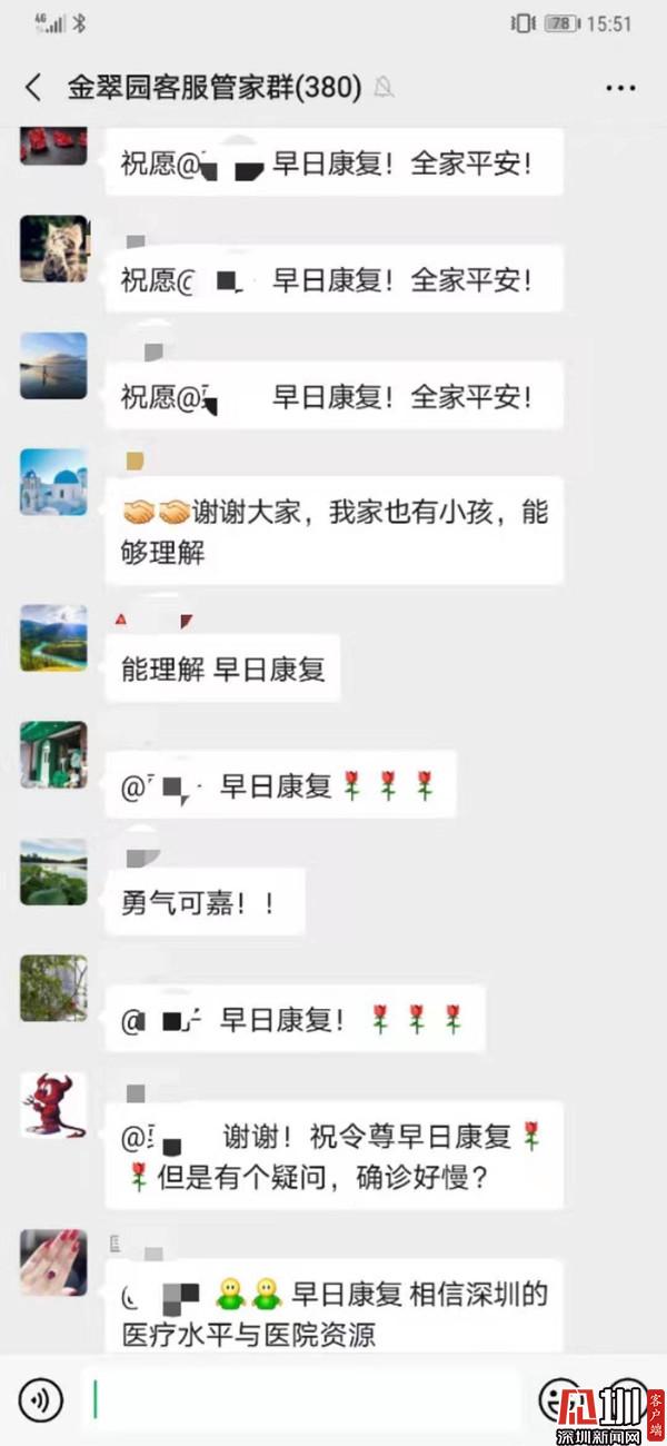 業(yè)主紛紛鼓勵確診患者家屬并祝其家人早日康復。